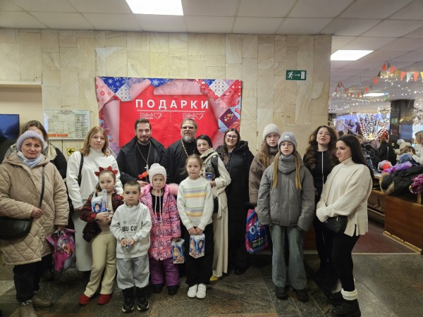 После Рождественского представления клирик Знаменского храма иерей Сергий Генченков вручил им сладкие подарки.