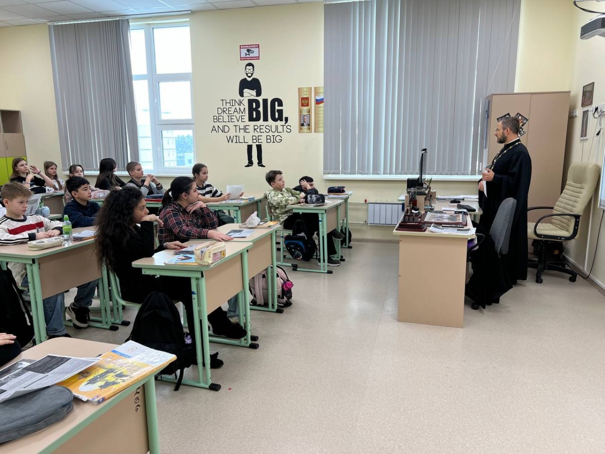 23 января клирик храма Архангела Михаила пгт. Путилково иерей Алексий Федоровский посетил общеобразовательную школу «Мозаика». В рамках Рождественской миссионерской акции иерей Алексий рассказал о Рождестве и Богоявлении при помощи подготовленной презентации. Беседа с учениками была живой и содержательной. Ребята с интересом задавали свои вопросы, на которые батюшка отвечал понятным школьникам языком.