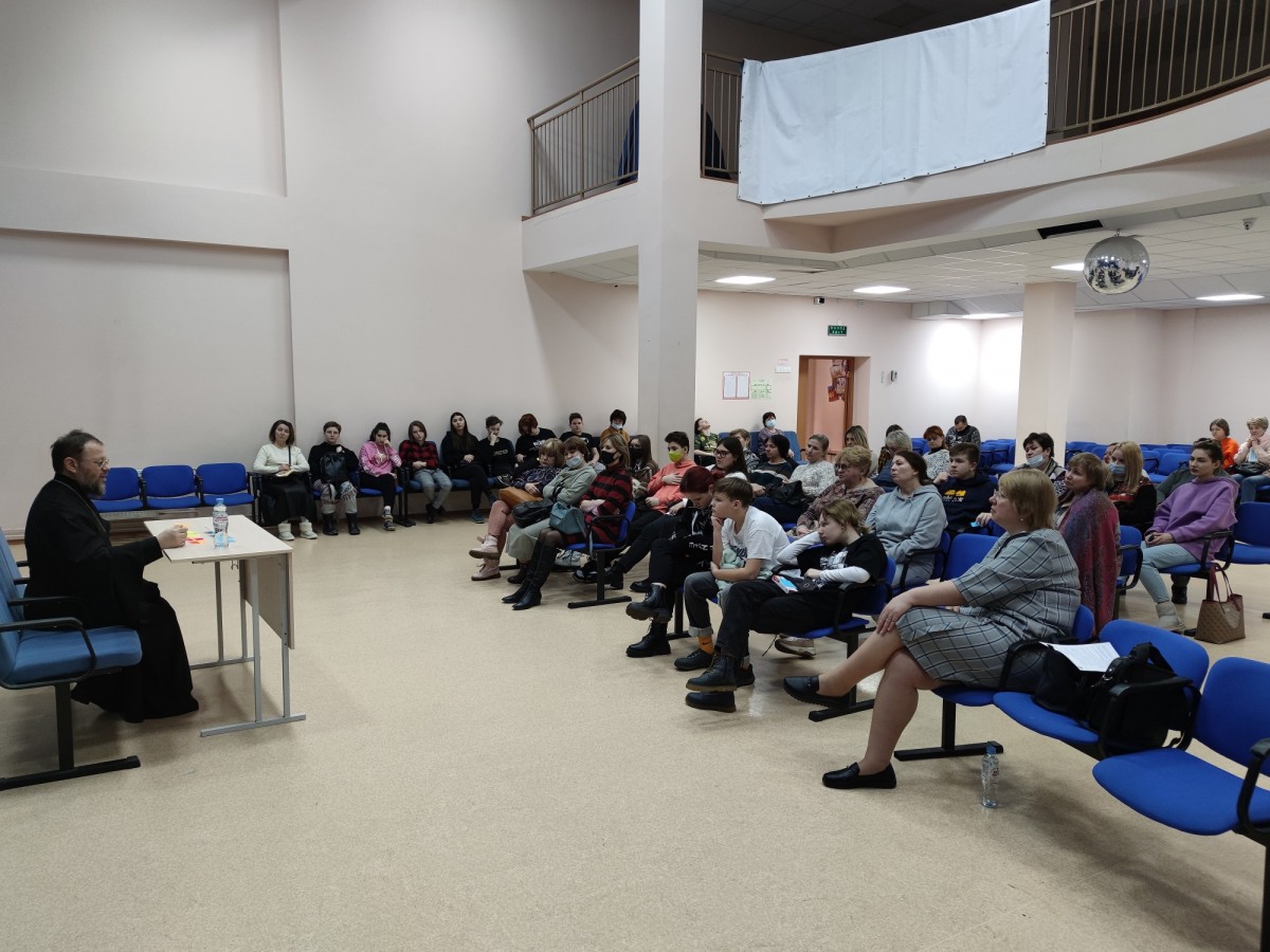 25 февраля в МБОУ СОШ №12 прошло мероприятие в рамках сотрудничества Красногорского благочиния и Управления образования г.о. Красногорск. На встречу с названием «100 вопросов священнику» собрались ученики старших классов Петрово-Дальневской, Николо-Урюпинской, Архангельской школ, МБОУ СОШ № 14 м-на Павшинская пойма, Гимназии 5 и Гимназии 7 (второй корпус). Всего в Актовом зале собралось более 50-ти обучающихся, а также педагоги и представители родительской общественности. Во встрече принял участие помощник благочинного Красногорского округа, настоятель Успенского храма с. Петрово-Дальнее иерей Антоний Калачиков. Встречу вела заместитель директора Красногорского методического центра Н.В. Пуленец. С учениками беседовал клирик Елисаветинского храма м-наОпалиха иерей Сергий Генченков.