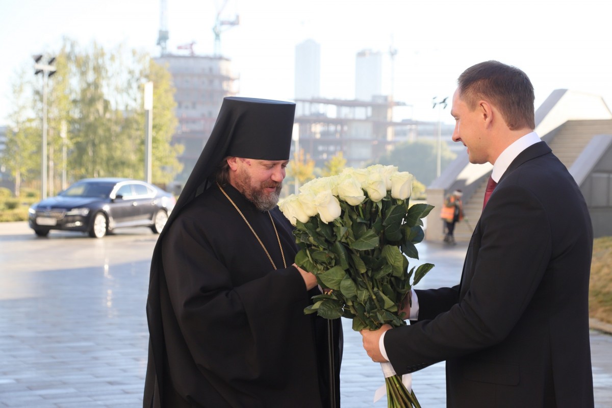 По окончании богослужения Его Преосвященство обратился к собравшимся с архипастырским словом и вручил главе городского округа Красногорск Дмитрию Владимировичу Волкову благодарственную грамоту.