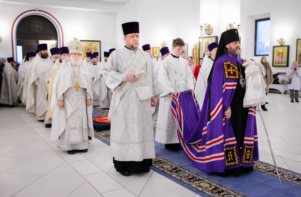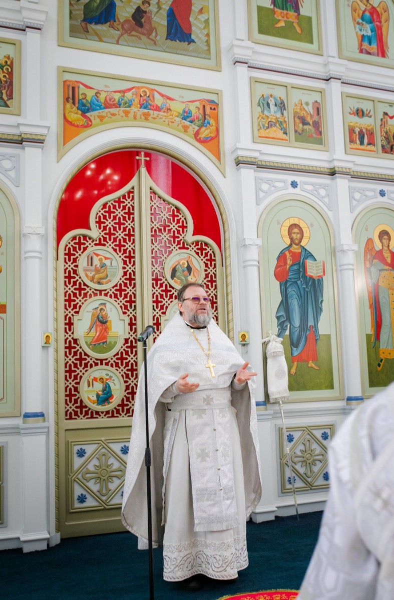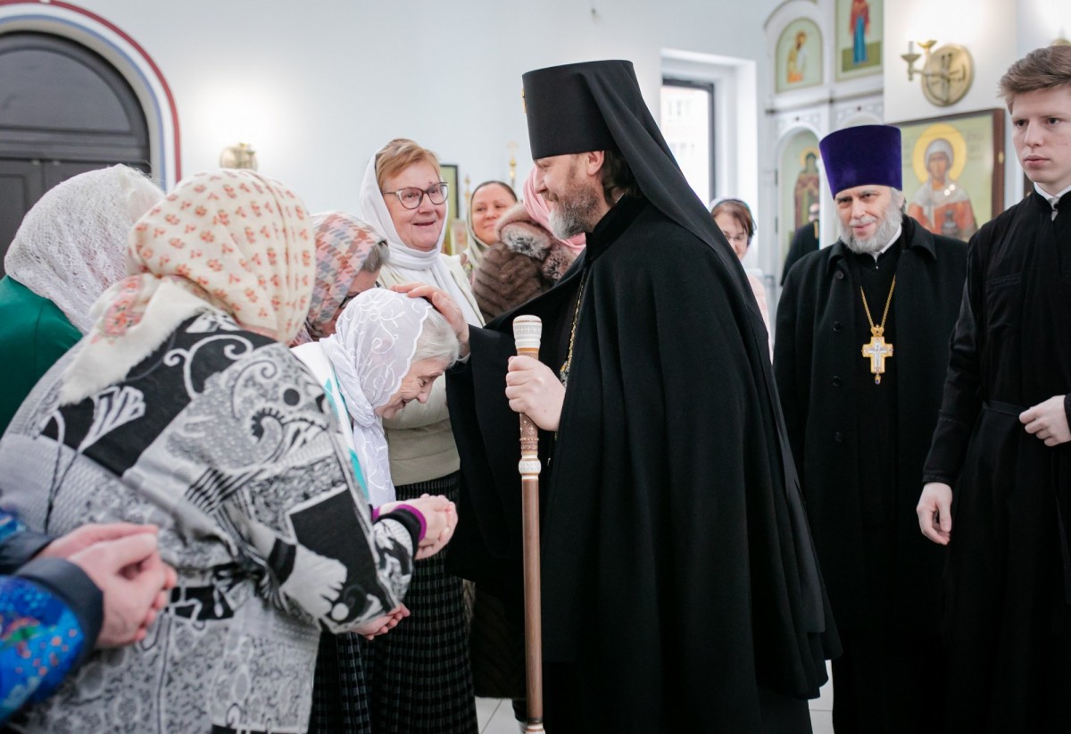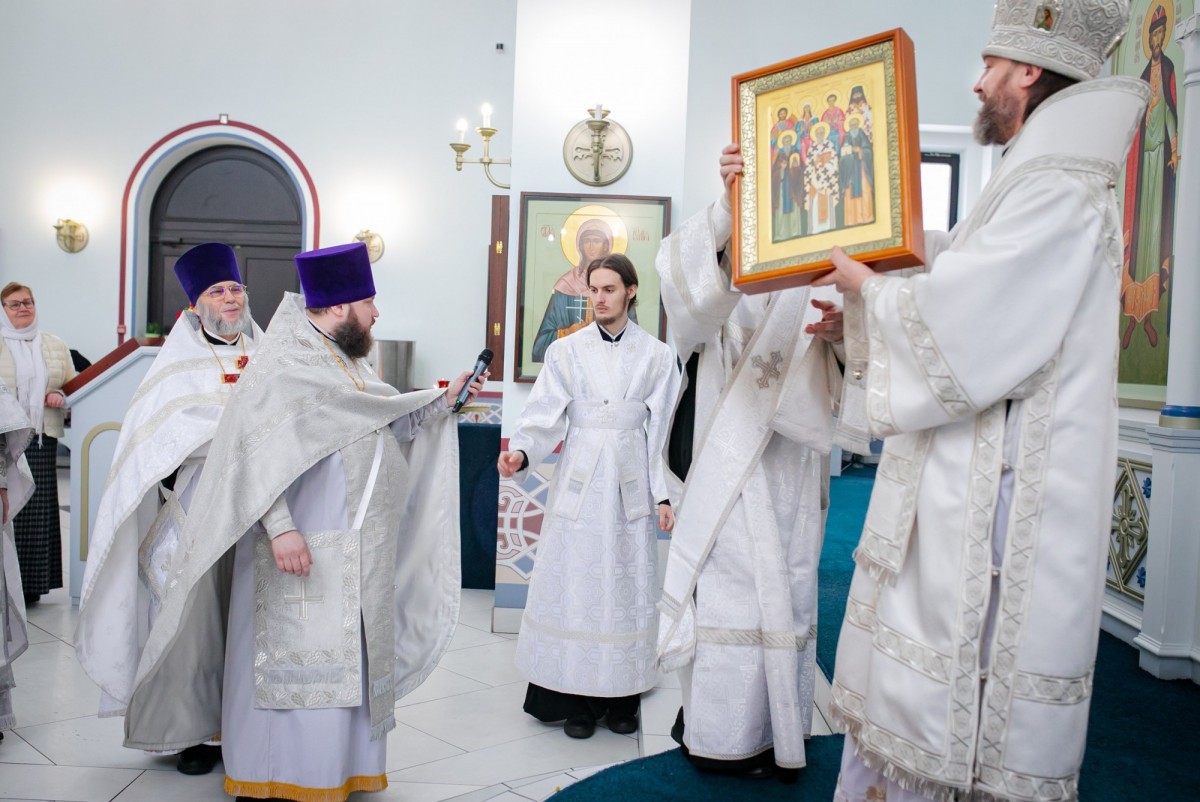 По окончании литургии состоялось славление празднику Крещения Господня. После настоятель храма священник Сергий Чесноков поблагодарил Владыку Фому за посещение прихода и преподнес в подарок рукописную икону со святыми, чья память приходится на день рождения Владыки - 30 ноября. Затем Архиепископ Фома обратился к собравшимся с архипастырским словом.