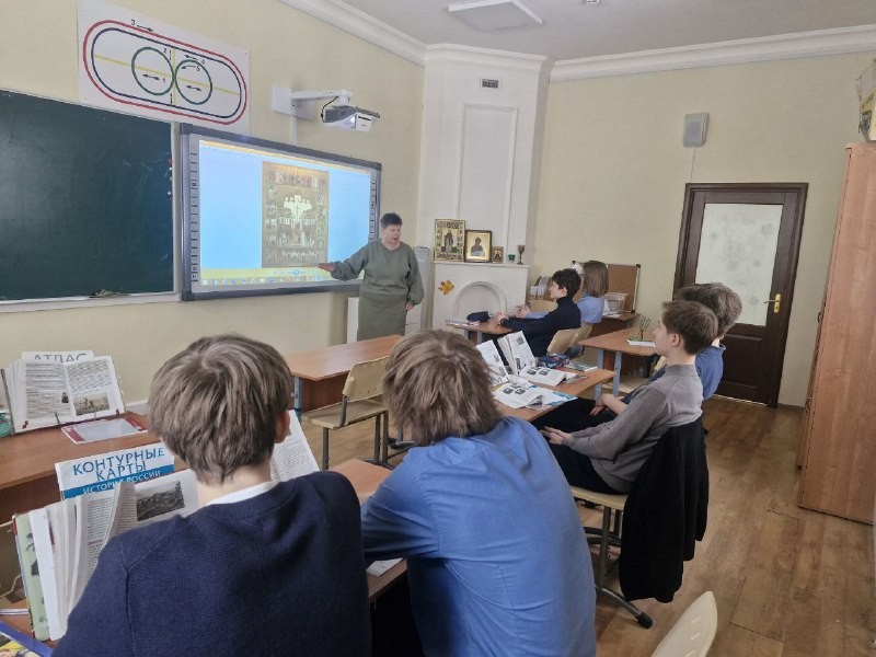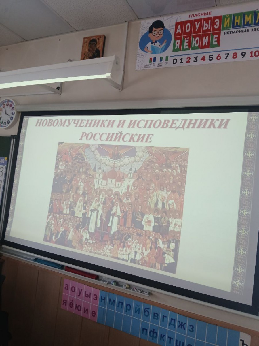 Со 2 по 6 февраля в Свято-Георгиевской гимназии проходили мероприятия, посвященные подвигу новомучеников и исповедников Российских, память которых Русская Православная Церковь отмечает в этом году 8 февраля. В начальной школе беседы проводили учителя ОПВ Е.В. Михайлова и А.С. Каржанова. Ученики 9 класса с учителем истории И.В. Пигулевской провели урок-исследование, на котором изучали икону новомучеников и ее клейма. Рассматривая клейма, ребята сами смогли рассказать о подвигах таких новомучеников, как священномученик Серафим (Чичагов), святитель Вениамин, преподобномученица Елисавета и других. В заключении они посмотрели отрывок, посвященный истории гонений на Церковь со стороны богоборческой власти, из фильма цикла «Земное и небесное».