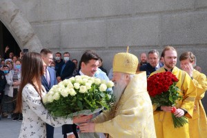Сердечно хотел бы поблагодарить Вас, Владыка митрополит, за Ваши добрые слова, всё сослужащее духовенство, вас, мои дорогие, за нашу общую молитву. С особым чувством я освящал этот храм. Часто, проезжая мимо, видел его, когда он начинал созидаться, затем, когда входил в свою красоту. И радовался сегодня, подъезжая к этому замечательному месту, что Господь мне, недостойному, благословил совершить великое освящение, которое венчает труд вас всех — многих благодетелей, наших государственных деятелей, которые этому содействовали.