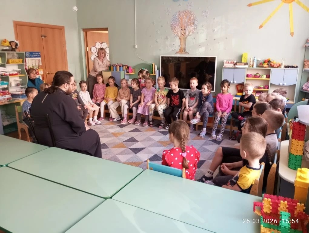 25 марта клирик Данииловского храма пос. Нахабино иерей Александр Якименко посетил филиал №2 дошкольного отделения МБОУ «Нахабинская СОШ №2», где провёл встречу с воспитанниками старшей и подготовительной групп (воспитатель Шутович Е.Ч.).