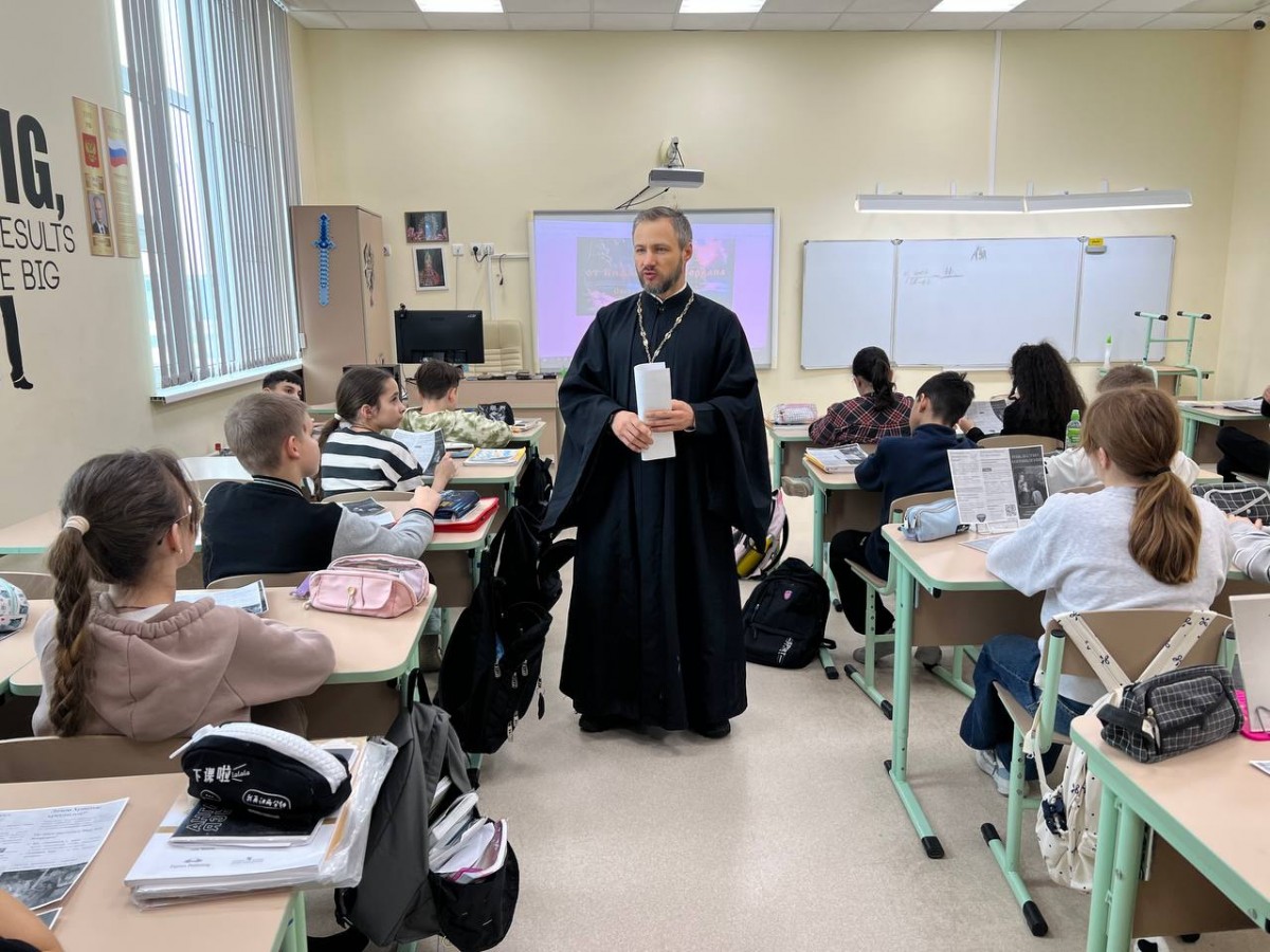 23 января клирик храма Архангела Михаила пгт. Путилково иерей Алексий Федоровский посетил общеобразовательную школу «Мозаика». В рамках Рождественской миссионерской акции иерей Алексий рассказал о Рождестве и Богоявлении при помощи подготовленной презентации. Беседа с учениками была живой и содержательной. Ребята с интересом задавали свои вопросы, на которые батюшка отвечал понятным школьникам языком.