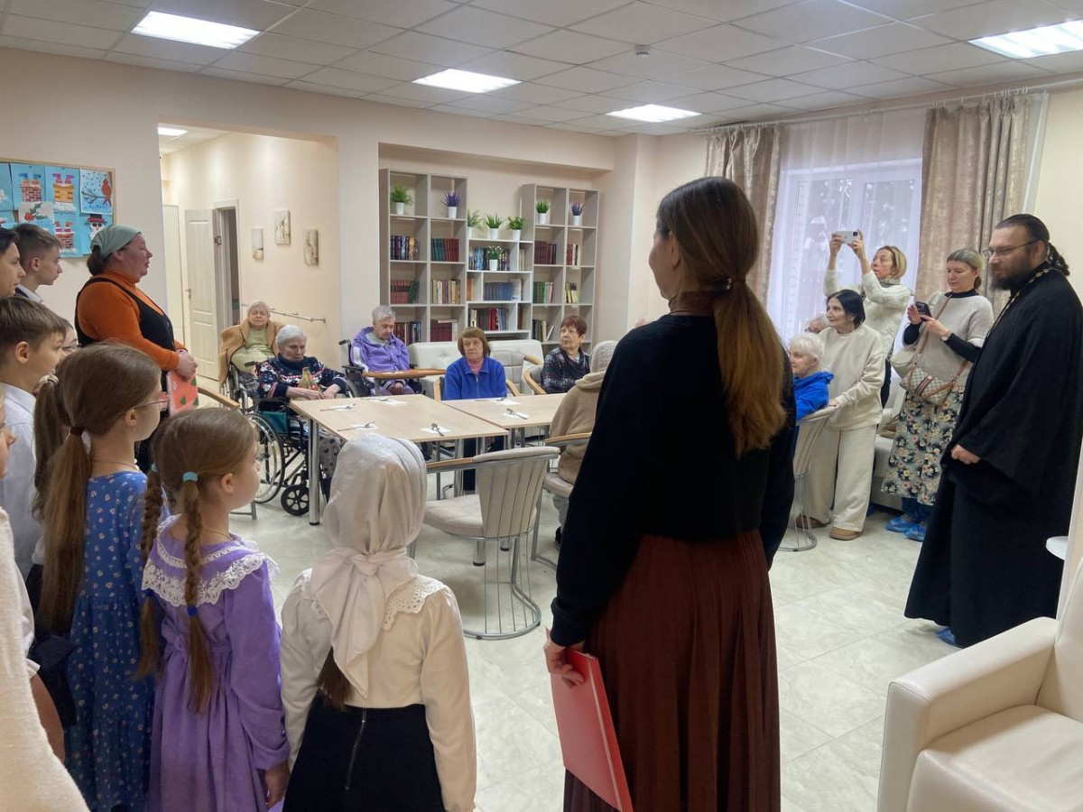 18 января учащиеся Воскресной школы Никольского храма с.Ангелово г.о. Красногорск провели рождественский концерт в пансионате для престарелых «Доброта». Настоятель Никольского храма с. Ангелово священник Иоанн Ширинкин вместе с педагогами и учащимися поздравили постояльцев с праздниками Рождества Христова и Богоявления.