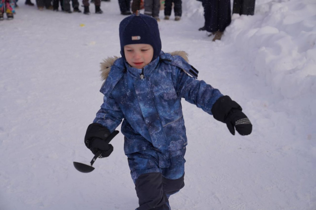 8 февраля в Георгиевском храме п. Нахабино прошел семейный праздник. По традиции ребята Воскресной школы после Причастия отправились на трапезу. Подкрепившись, они вышли на улицу и приняли участие в семейной эстафете. Родители с радостью помогали ребятам весело переносить снег половником, подметать веником и кататься на необычных санках. Размявшись на морозе, дети отправились на занятия Воскресной школы, а взрослые - подкрепиться.