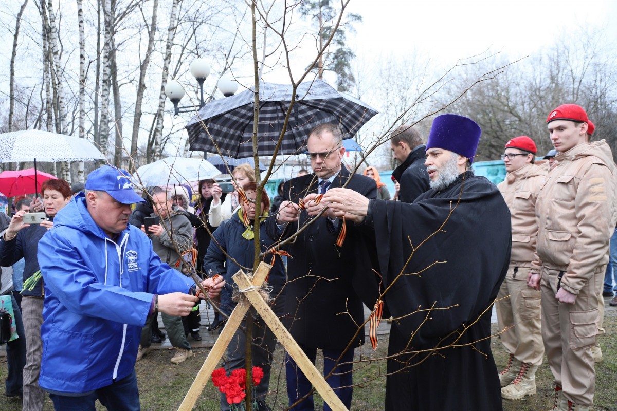 21 апреля настоятель Знаменского храма г. Красногорска протоиерей Владимир Шафоростов принял участие в торжественном мероприятии, посвященному увековечиванию памяти погибшего офицера, капитана Мороза Виталия Сергеевича. По просьбе матери погибшего воина Виталия на аллее героев «Красная горка» посадили липу и установили именную табличку.