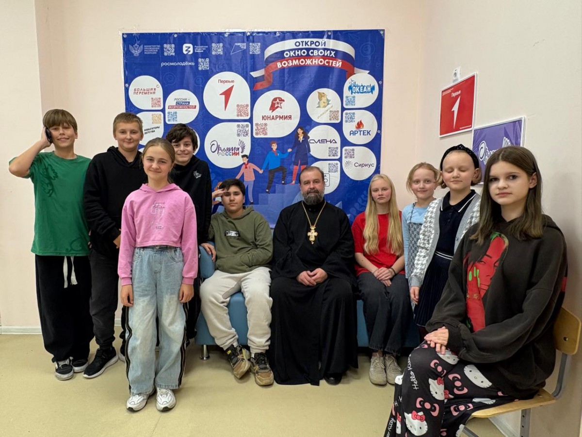 2 октября настоятель Казанского храма г. Красногорска протоиерей Сергий Попов принял участие в работе медиацентра Опалиховской гимназии. Батюшку пригласили для записи конкурсного видеоинтервью с участником специальной военной операции. Протоиерей Сергий ответил на вопросы, предложенные ведущей Софьей Адамовой. Затем каждый из присутствующих ребят смог задать свой вопрос. Беседа получилась очень интересной и насыщенной и продлилась более двух часов. Было принято решение, что такие встречи станут регулярными. А для самых активных ребят отец Сергий обещал организовать экскурсии в студии телеканала «Спас» и радио «Вера», с которыми давно сотрудничает.