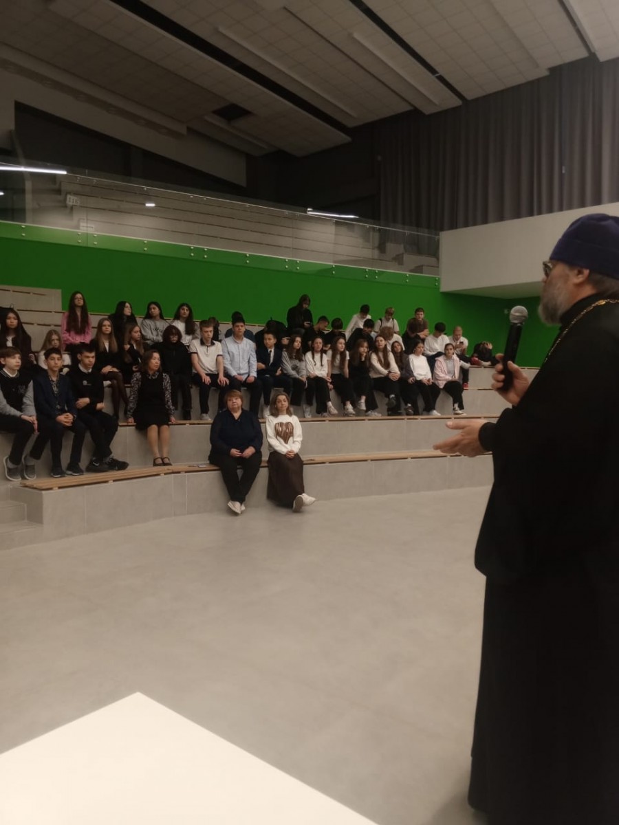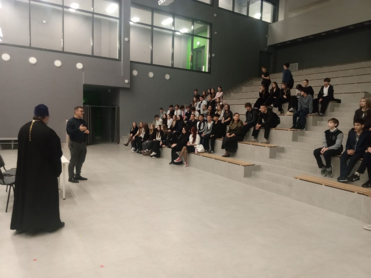 31 октября, в рамках празднования Дня народного единства, клирик Знаменского храма г. Красногорска, член Координационного Совета по взаимодействию Управления образования г.о. Красногорск и Красногорского благочиния священник Сергий Генченков и настоятель Никольского храма с. Ангелово священник Иоанн Ширинкин провели встречу со старшеклассниками Образовательного центра «Отрада». Учащимся рассказали о христианском смысле праздника и о духовной целостности, как основе народного единства.