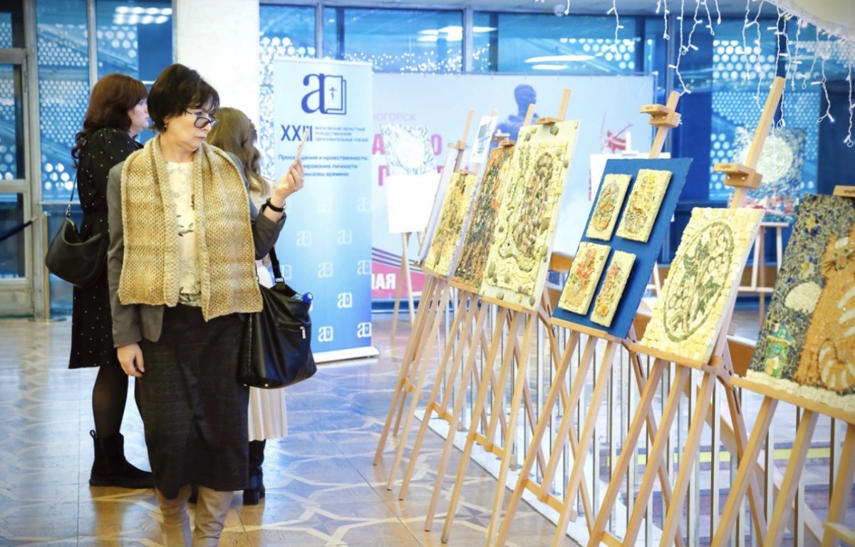 Гости мероприятия смогли увидеть мозаичные панно студии «Музыка камней», выполненные в традиционной технике смальты, а также работы художественных студий «Серебреная кисточка» и «АртИстории».