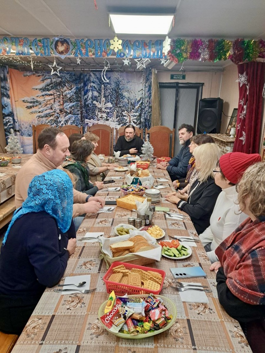 Далее гости были приглашены в трапезную храма на чаепитие. В тёплой душевной обстановке отец Иоанн выразил слова поддержки семьям погибших участников боевых действий, а по окончании мероприятия вручил им памятные подарки.
